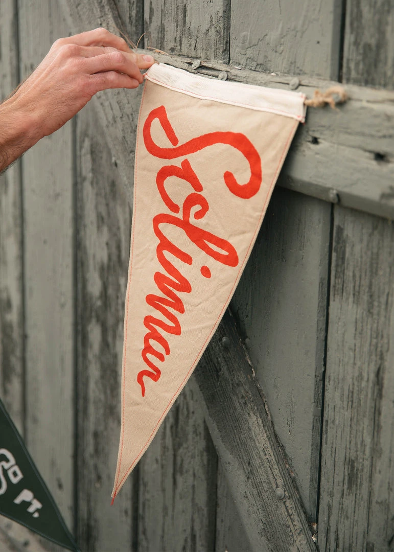 - Each flag is topped with a natural twine for hanging, twill tape, and stamped on the back with Slightly Choppy branding