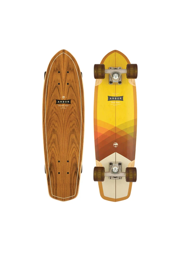 Certified Arbor Completes are fully assembled skateboards built using select, high-end components that complement the performance and geometry of each of our shapes. Each package takes into consideration: the angle, geometry, and size of the trucks; the size, shape, and diameter of the wheels, the hardness and rebound of the bushings; the placement of wheel wells; and all aspects of shape. When buying an Arbor, look for the symbol, and insist that your complete comes with components approved by Arbor Skateboards.