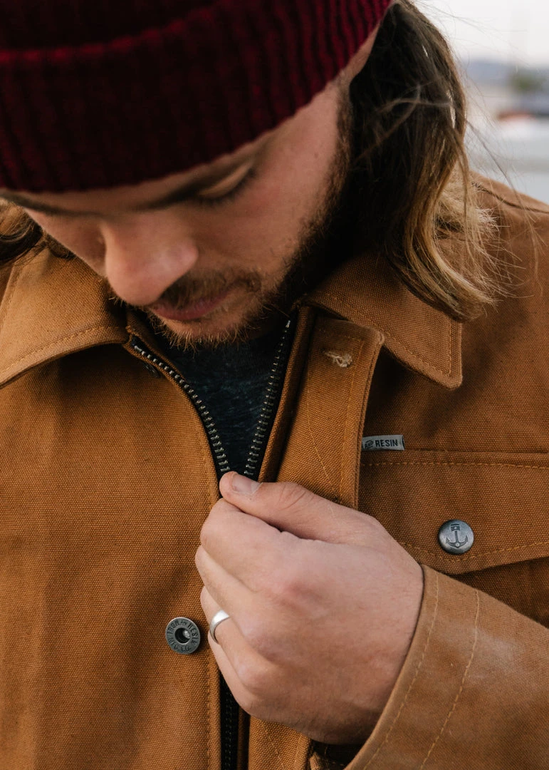 Made with a heavy #8 cotton duck and built with a definitive purpose. We’re talking about a heavy YKK front zippered entry with a front placket that closes it all off with custom I&R shank buttons. The heavy collar on the Terrain Jacket is perfect to pop on those colder mornings or late-nights, plus we added front hand pockets to keep those mitts warm when everyone’s taking part in that bullshit circle. It comes standard with a number of internal pockets for those daily everyday-carry items.