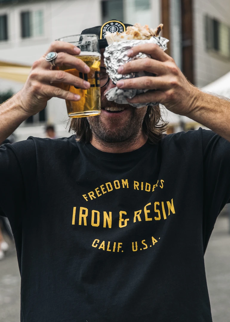 - Iron & Resin custom screen printed “Alliance” graphic on front chest