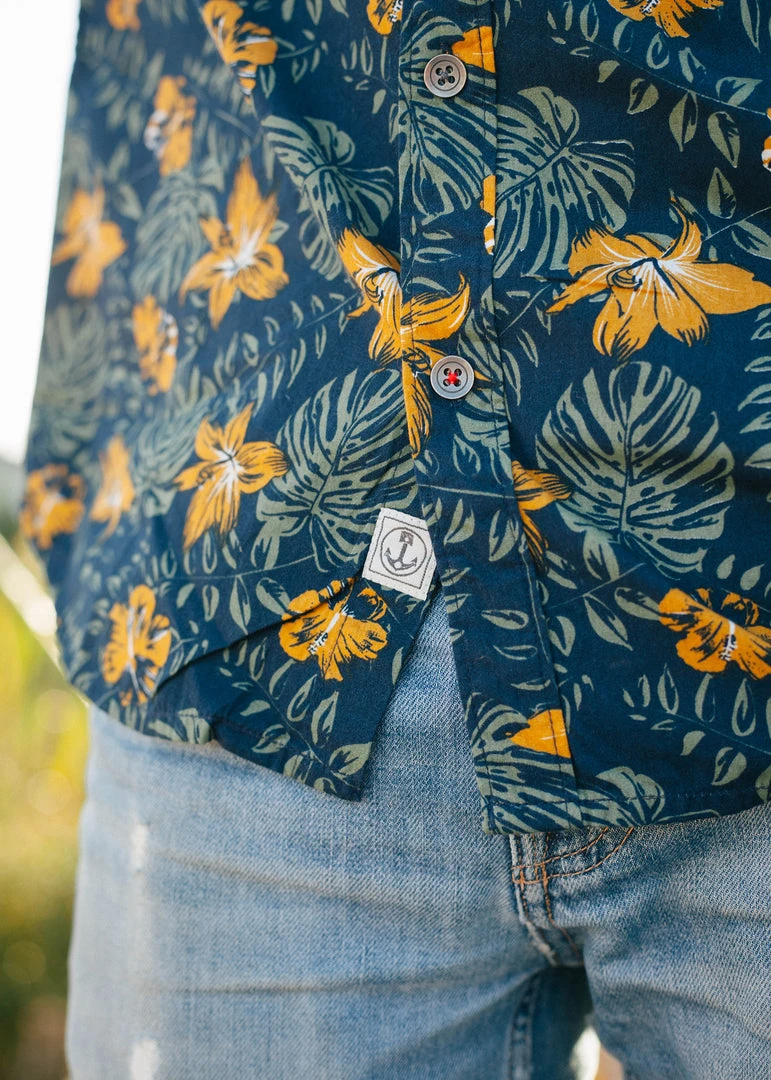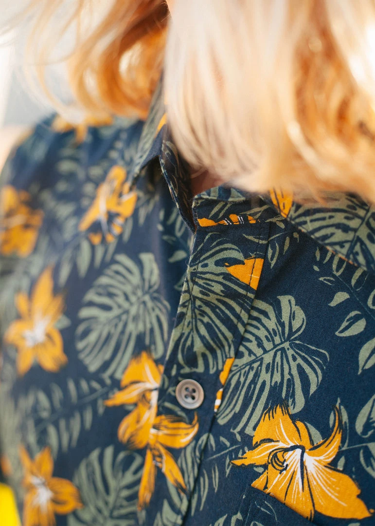 - Lightweight 100% cotton button-up with custom InR Aloha Revival print