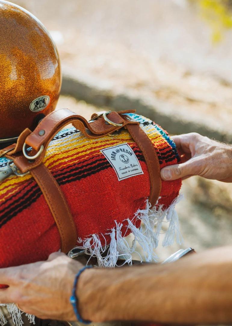 Our Leather Blanket Roll does exactly what you need it to do, keep your blanket rolled up neatly and packed up tight. We can’t tell you how many times we’ve used this thing to strap one of our blankets on the back of the bike or simply rolled up to go camping, because pack space and conveniency is precious while out on the road.