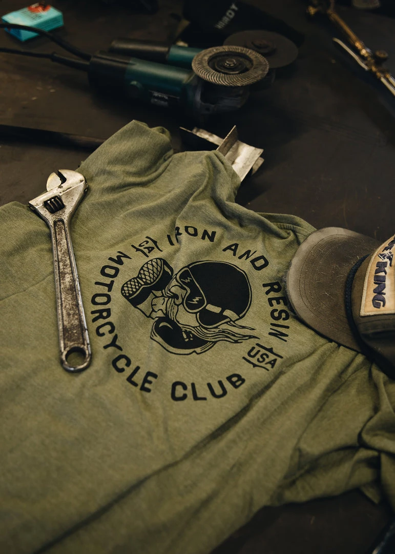 The Motorcycle Club Tee carries a bit of nostalgic vibes everywhere it goes. The 50/50 cotton & polyester blend provides it with that everyday expected comfort, and our customer Iron & resin front chest and back graphic gives it that throwback touch to the good ol’ days.