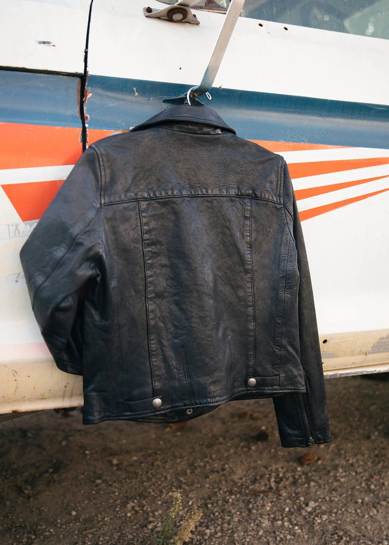 The Rocker Jacket has a tailored, yet relaxed fit specifically for women. We highly recommend ordering your true size in this leather jacket. For sizing reference, the model in the photo is 5’9″ + 135lbs and wears size Medium in this jacket. However, if you have any question on what size to order, please reach out to us before placing your order.