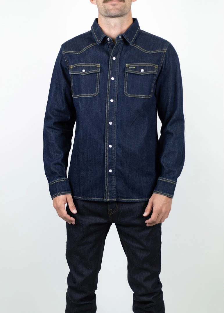 The Saddleback Shirt is tailored fit. We recommend ordering your true size with this indigo denim button up. However, if you are still unsure about your size, or have any questions regarding the fit of our Saddleback Shirt, please reach out to us directly.