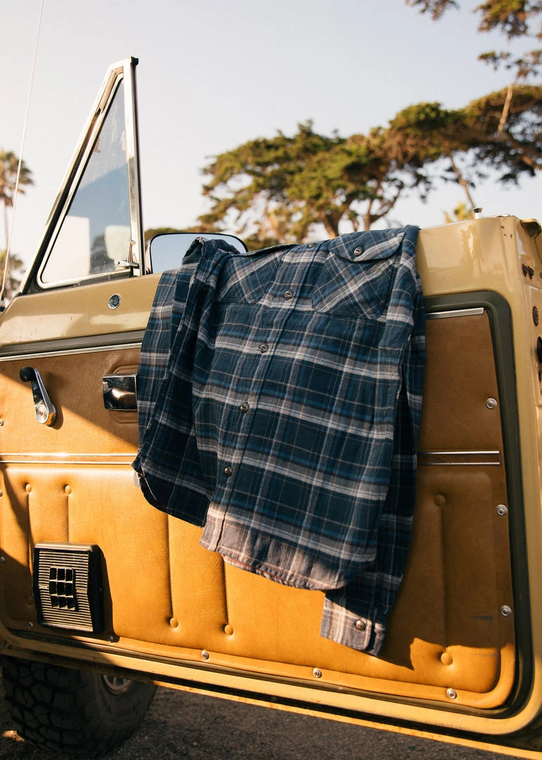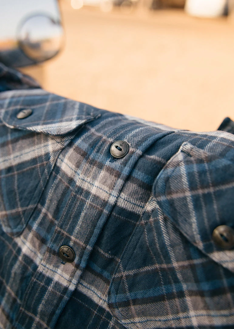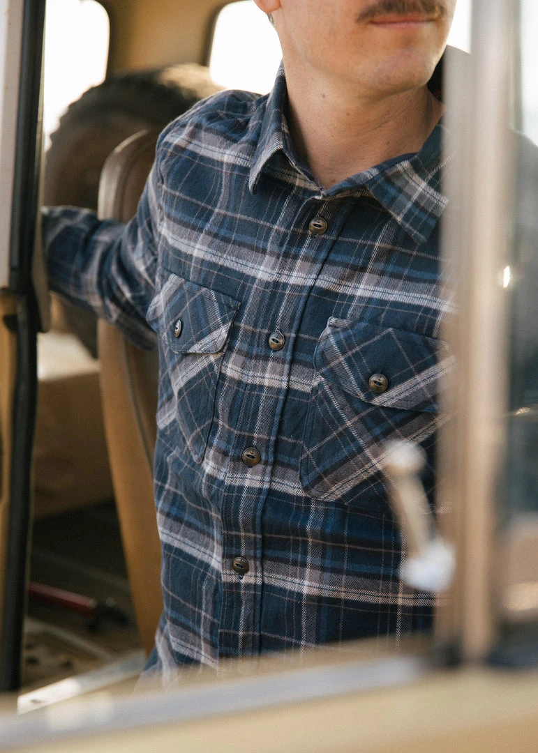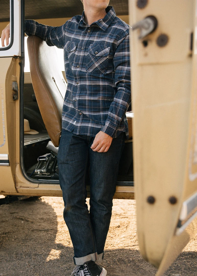 The Yuccon Shirt is made from a 6.75oz yarn dyed cotton flannel and accompanied by custom INR buttons, locker loop drawcord, and two convenient chest pockets this piece is one that is built to withstand the demands of a life on the road.