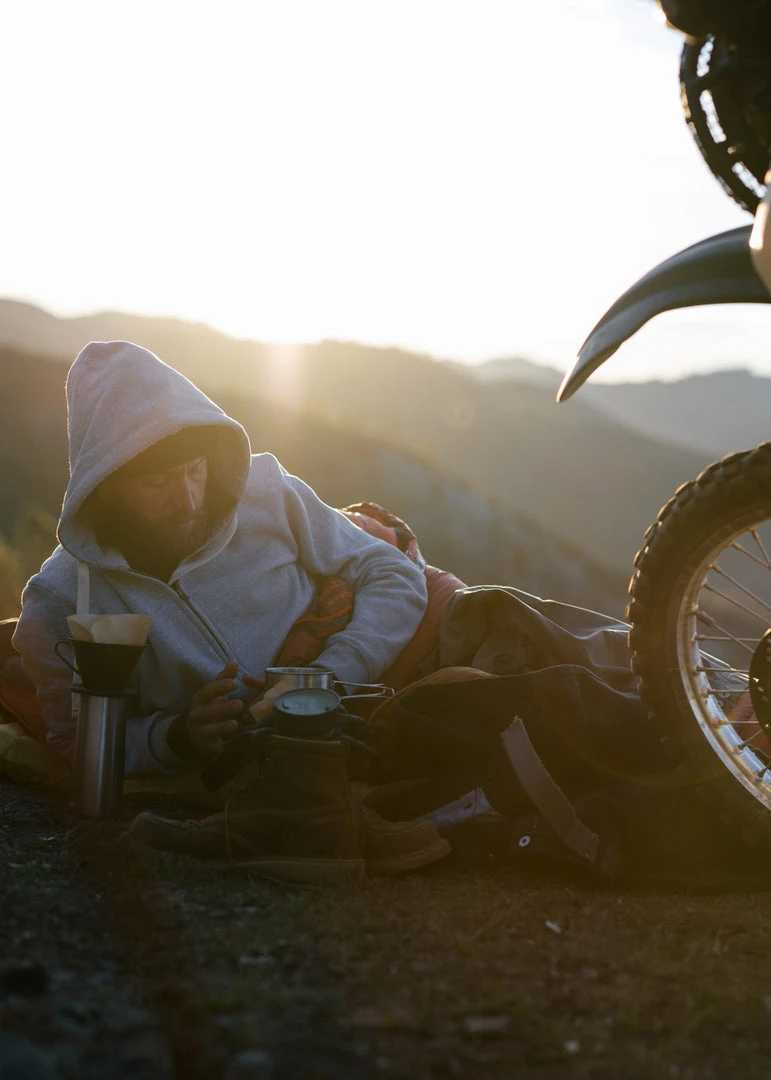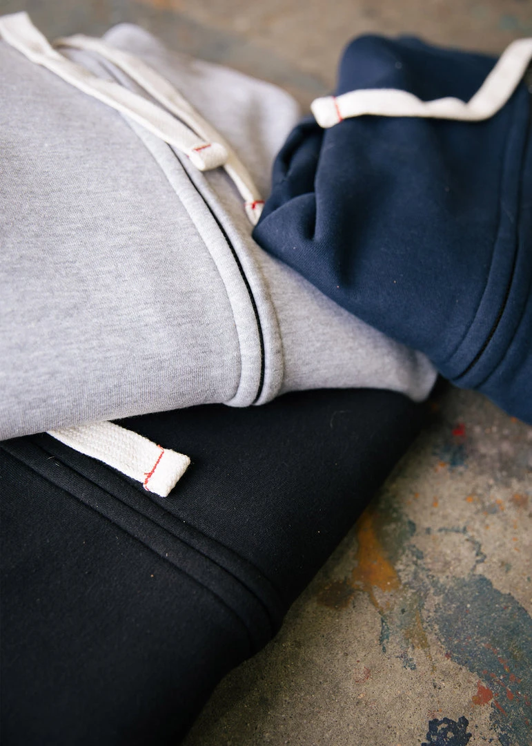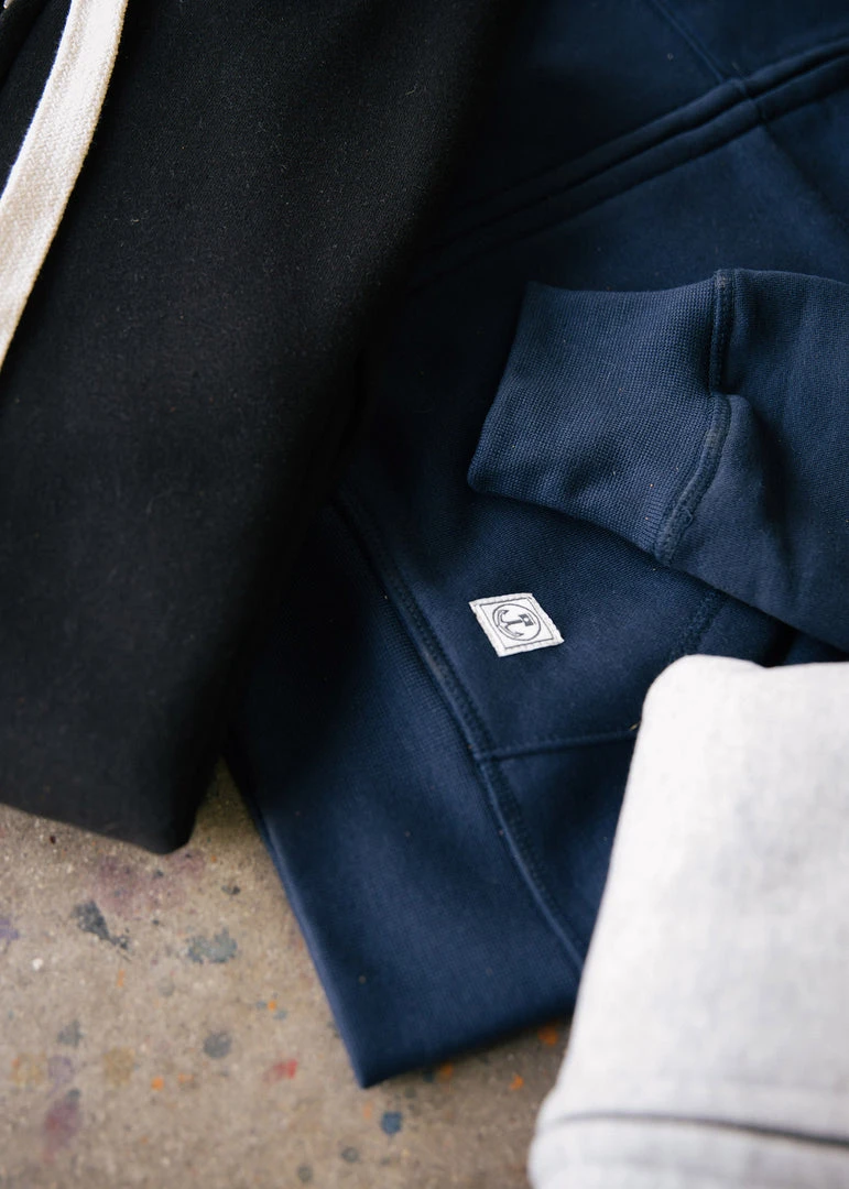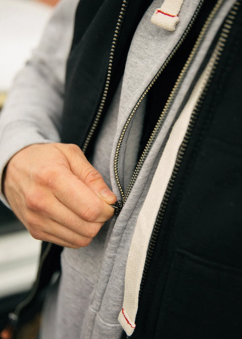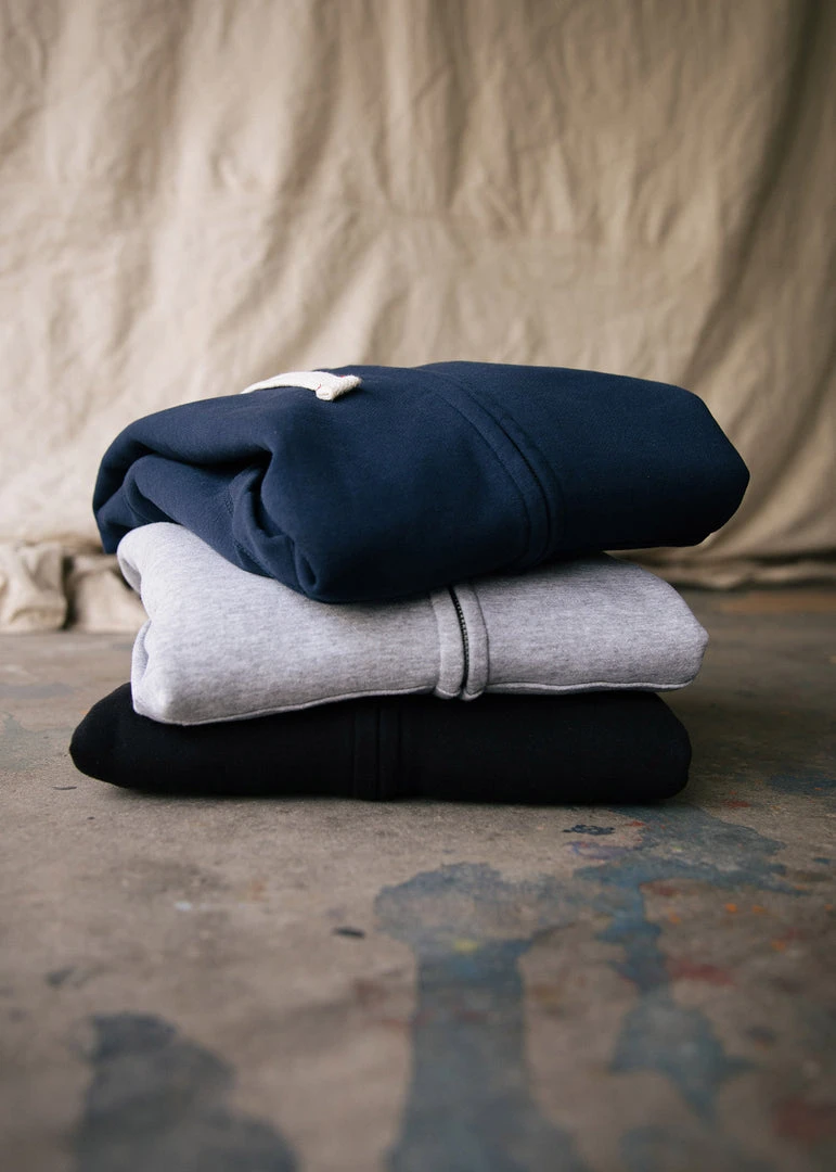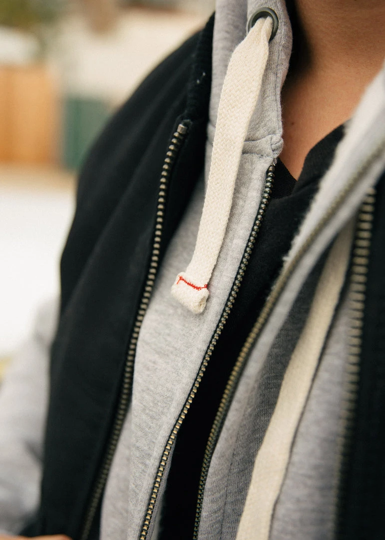 Why French terry? French terry is a super comfortable material from the knitting a combination of cotton and polyester together. For our Boundary Zip Hoodie, that’s 80% cotton and 20% polyester. The result is a soft, super plush texture on the inside from the soft piles of fabric that have been brushed. As a result, the tightly knitted fabric is super durable and is known for its mid-weight layering factors.