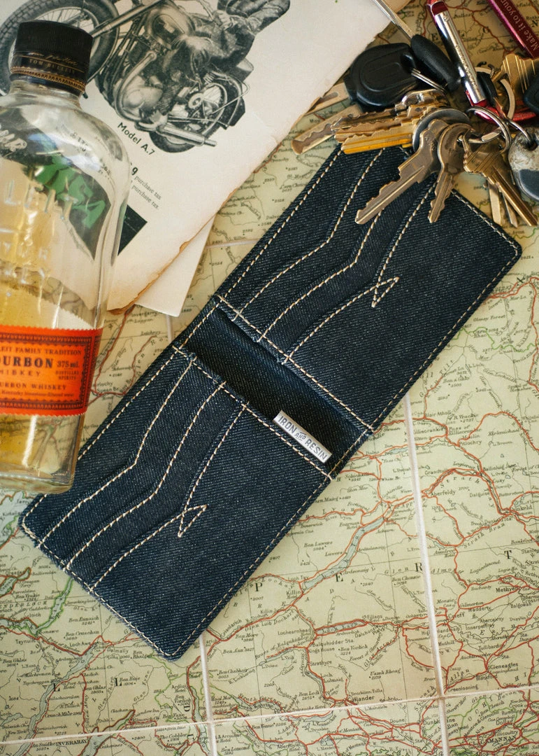 The Bronson Wallet carries just the right combination of leather and denim, a ratio that needs to be mixed rather carefully to get it right. But for our newly released Bronson Wallet, we used a nice Saddle Brown veg-tan leather on the outside with a fully functional 10oz indigo denim interior. With six easily accessible card slots, and a few hidden slots for those nonsense receipts, the only thing you’ll regret about this one is the amount of times you’ll be opening it.
