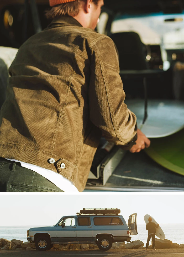 We’d have to say our Corduroy Rambler Jacket is the perfect companion for that everyday life on the go. It’s that perfect weight to layer over a hoodie when it’s slightly cooler out, or throw it over a tee to dress that drifter look up a bit. The trucker-style fit on the Corduroy Rambler Jacket the exact same fit as our famous Waxed Cotton Canvas Rambler Jacket, except this one is made of 98% cotton corduroy + 2% elastane so there’s a nice stretch to it. The chest and hand pockets ensure ample cargo space to stash all the odds and ends, and when you need to roll up your sleeves and get your hands dirty, the dual button adjustable cuff has you covered.
