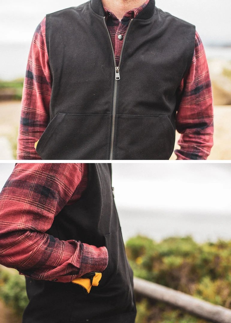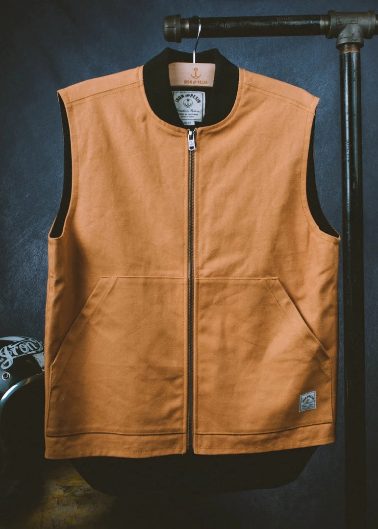 The Highway Vest touts a combination of a clean-cut silhouette. With its utilitarian materials, this thing merges street ruggedness with a highway road functionality straight out of Easy Rider in ’69. Made with a heavy duty 12oz Duck Canvas exterior and a super soft 100% cotton flannel liner, the durability and weight the right amount. Bottom line: this vest will stand up to the daily demands and only get better with age.Â