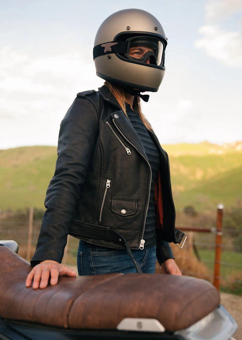 Our Ironhead Jacket is our latest leather jacket that’s been built just for women. Inspired by the early style of the ’50s, where cultural icons like Marlon Brando were paving the way for timeless pieces that are still rippin’ on the highways today, we wanted to translate our love for those nostalgic vibes directly into our outerwear for women.