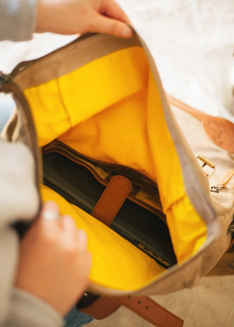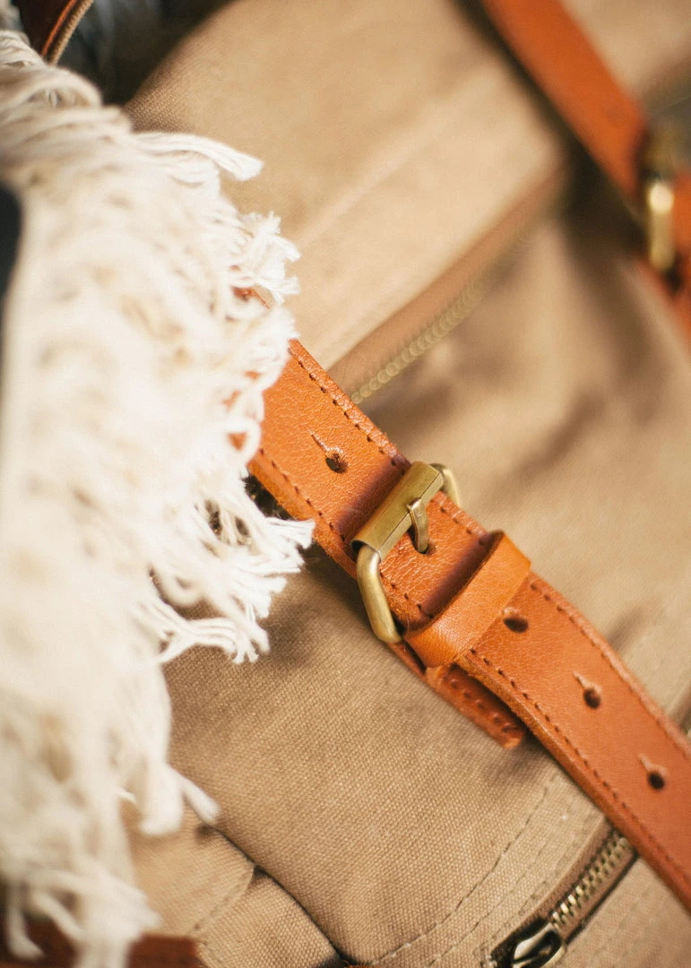 - 15oz honey bee waxed cotton canvas exterior with 1.6-1.8mm heavy buffalo hide leather bottom