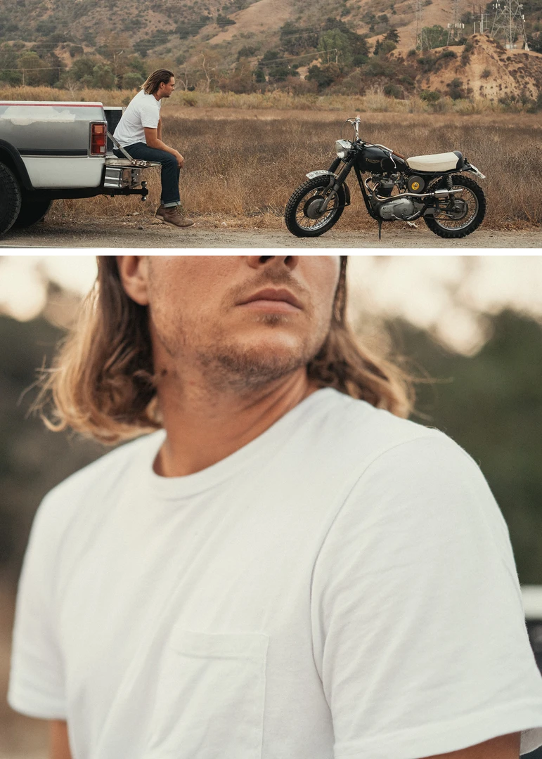 We knit our Perfect Tee fabric right here in Southern California from premium U.S. grown cotton and then cut, sew, and dye ’em right down the road from us in L.A. Then we give them a pre-washed finish that makes them vintage soft, just like those favorite tees that have been kicking around in your drawers for years.