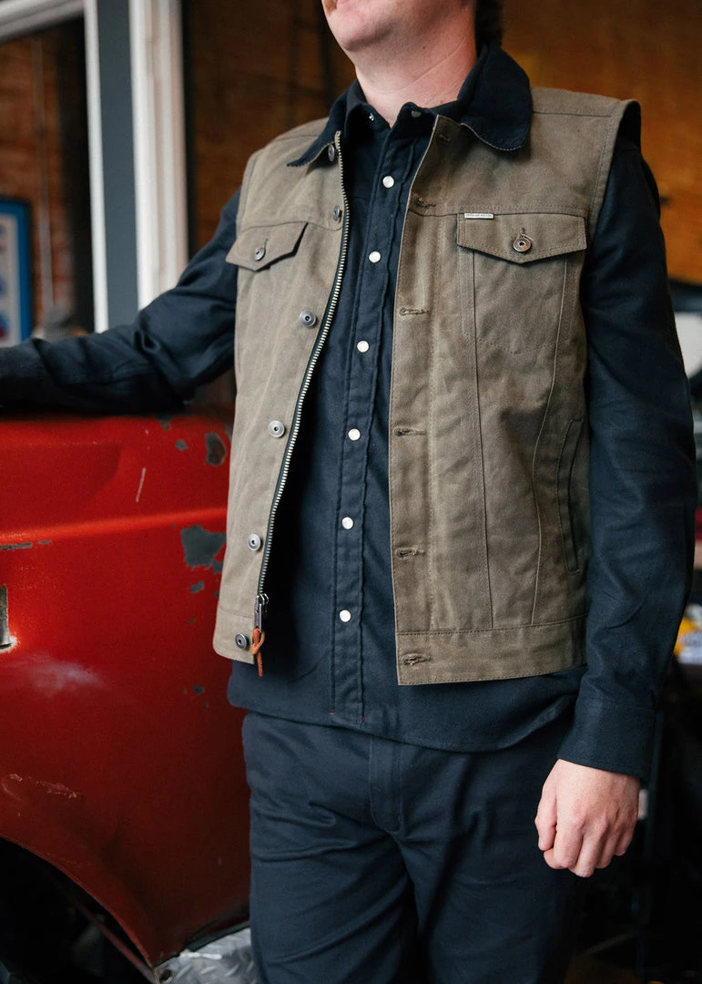Just like our famous Scout Jacket that’s been around for years, our newly released Scout Vest has also made from a 12oz Halley Stevensonsâ„¢ Waxed Cotton Canvas of Scotland. Halley Stevensonsâ„¢ are textile experts and pioneers of waxed cotton development dating back to 1880, making this is one of the nicest waxed cotton canvas we’ve ever worked with. The interior is lined with our Klamath Flannel for extra warmth and closes up with a heavy Talon® front zipper. This is one piece you’re not going to want to miss out on.