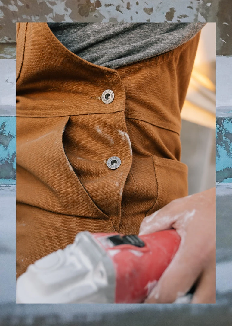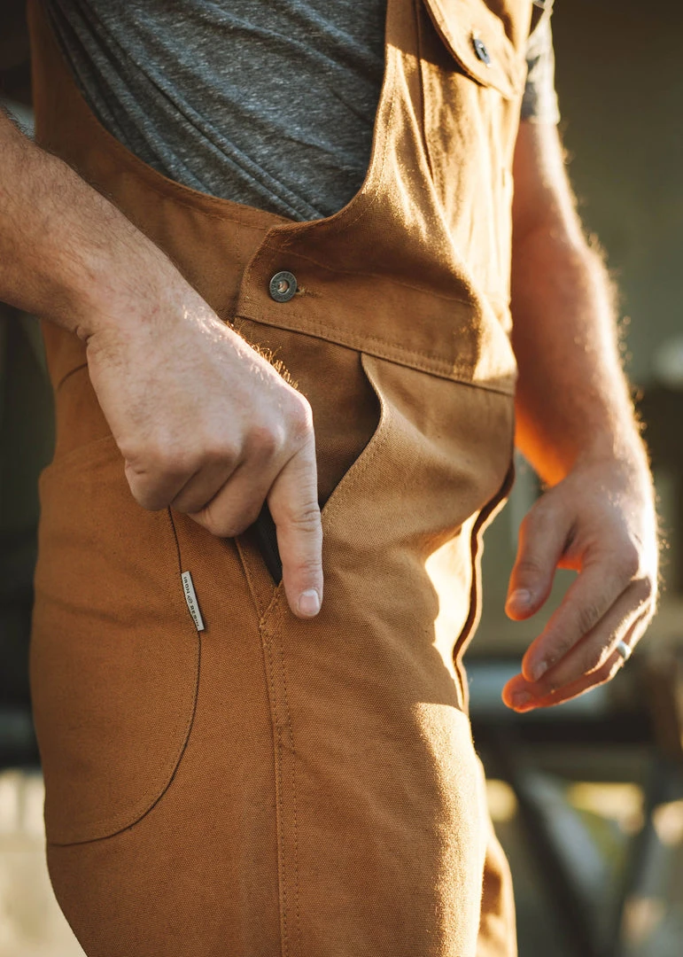 For the ultimate utilitarian workwear, we built the Tatham Overalls using the most durable material we could find, an 18oz cotton duck canvas. These overalls come ready to be put into some heavy ass work, and will withstand all the wear-and-tear along the way. We gave these overalls extra pocket space to store those small tools in the front, deeper pockets in the front and rear, and adjustable 1.5″ straps (with the right amount of stretch) for a precision fit without restricting that necessary mobility.