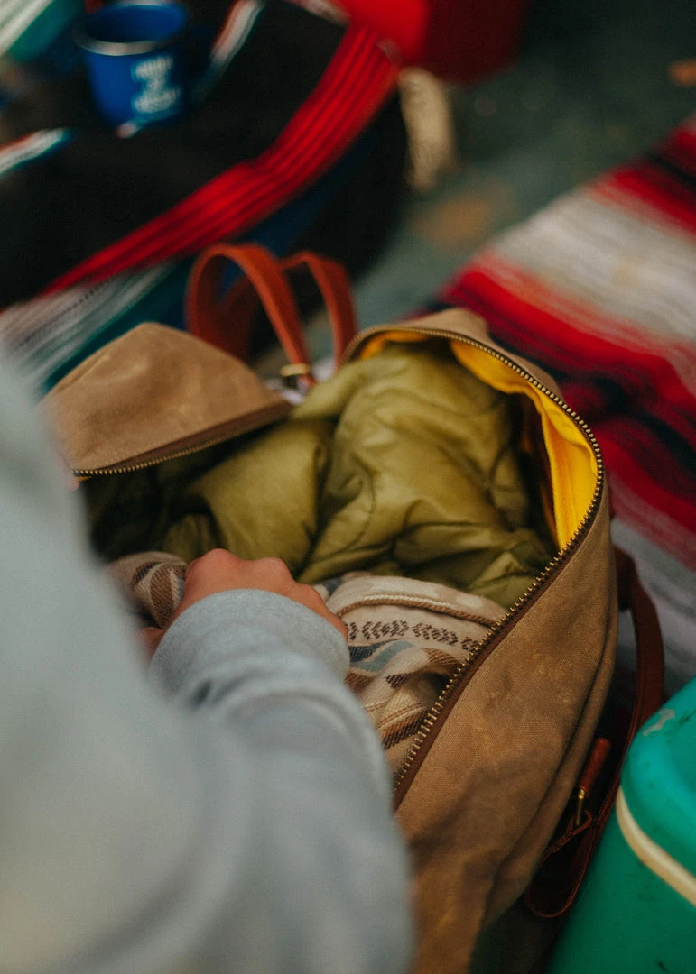 The Getaway Bag. The name says it all. Engineered to be the perfect throw-it-all-in-and-crash-anywhere bag, this travel compadre is easy to pack and even easier to throw in the rig and go. With 26L of volume, this duffel bag has ample room for a weekend out. Its water repellent waxed cotton canvas with Buffalo hide leather bottom makes it a versatile bag for an array of conditions. Use it for a night out in Joshua Tree or a quick weekend stay in Big Sur. You choose.