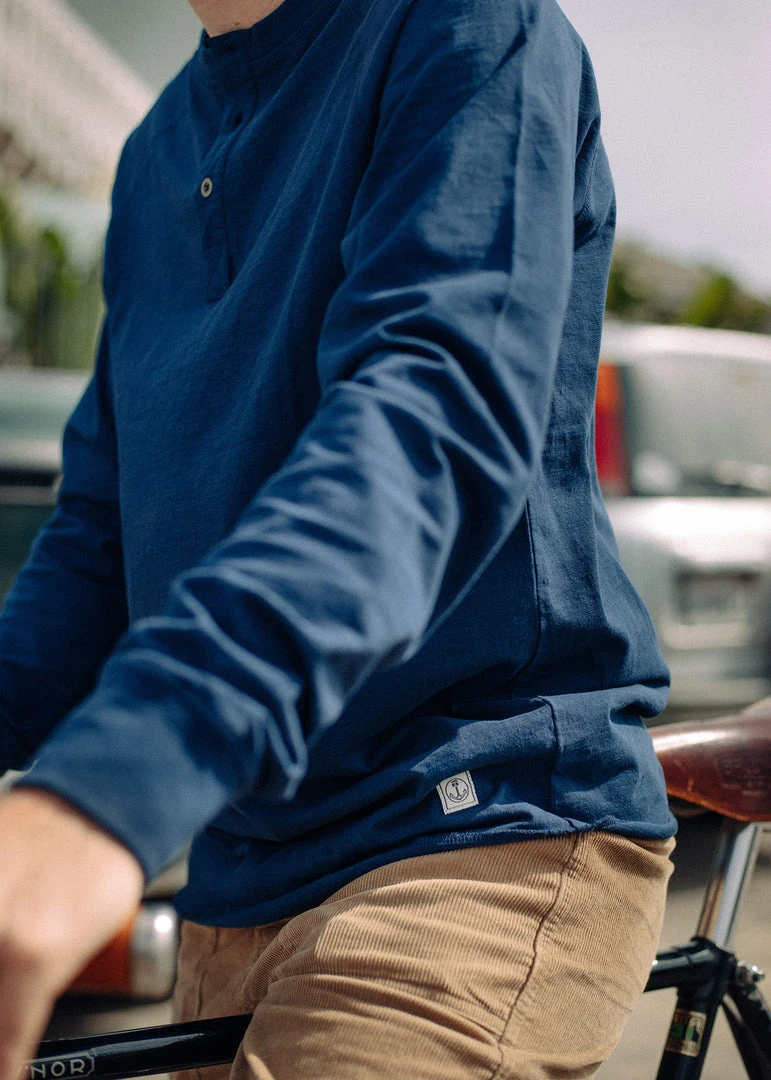 We’d like to say the Topock Henley fits slightly on the slimmer side. So, when ordering, we would consider going one size up from your true size. Plus, if you throw this thing in the dryer, there may be slight shrinkage. If you have any questions about what size to order, please reach out to us before placing your order.