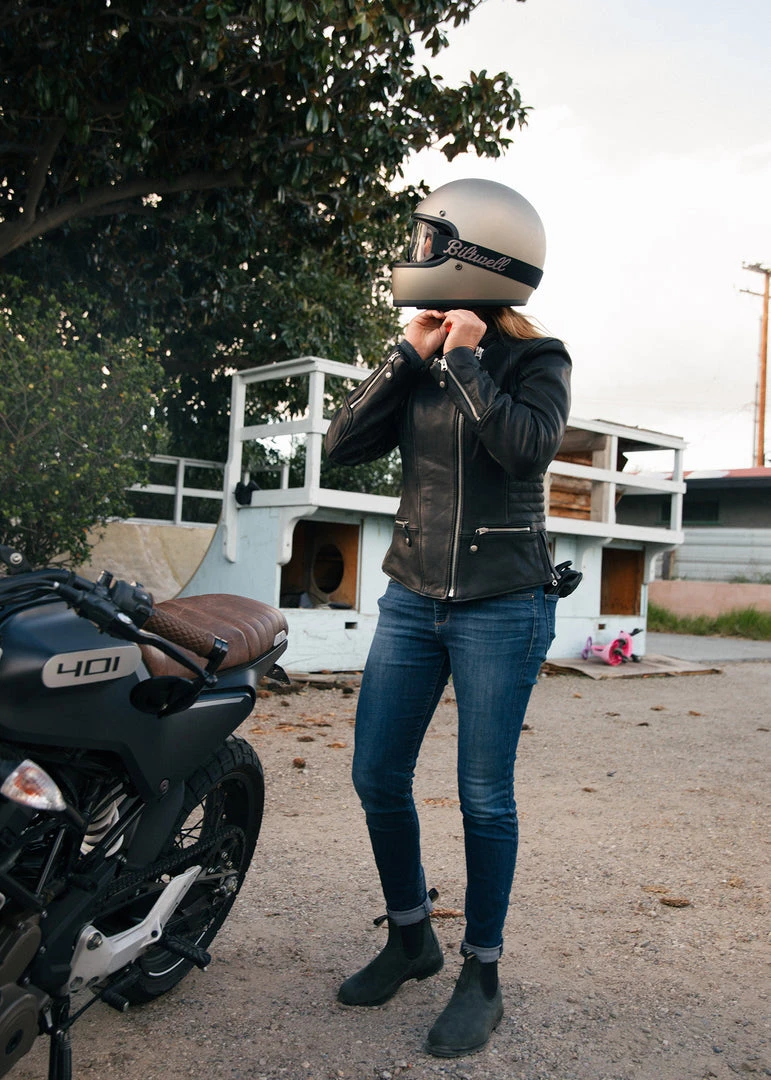 Worthy of ripping down any highway or backroad of your choosing, or even for a night out on the town, our latest Trinity Jacket is a brand new leather women’s outerwear piece for 2022, exclusively built with a female fit in mind.Â