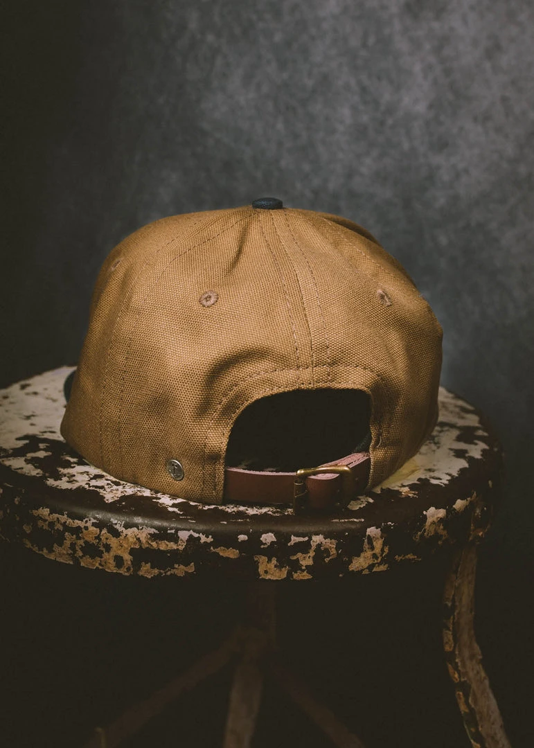 This 6-panel hat is constructed from 9.25oz 100% cotton duck canvas and stays tight on the dome with an adjustable leather strapback. The weight of the duck canvas material makes it great for the fall + winter season.