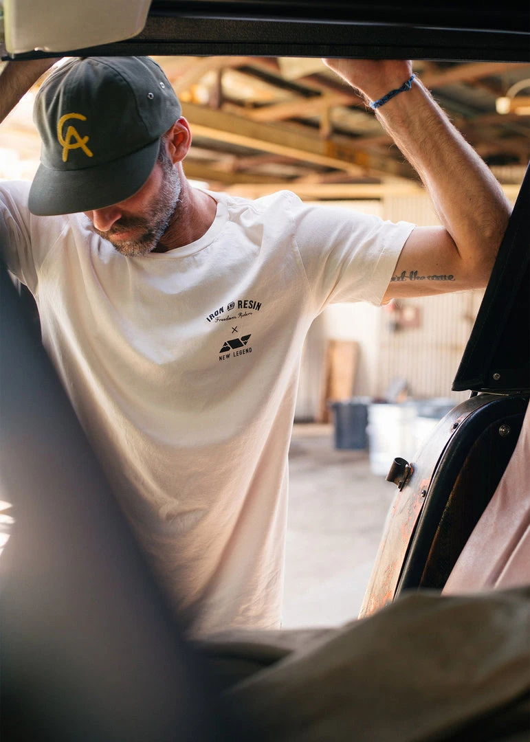 - Iron & Resin hand drawn graphic on front chest and backside of tee