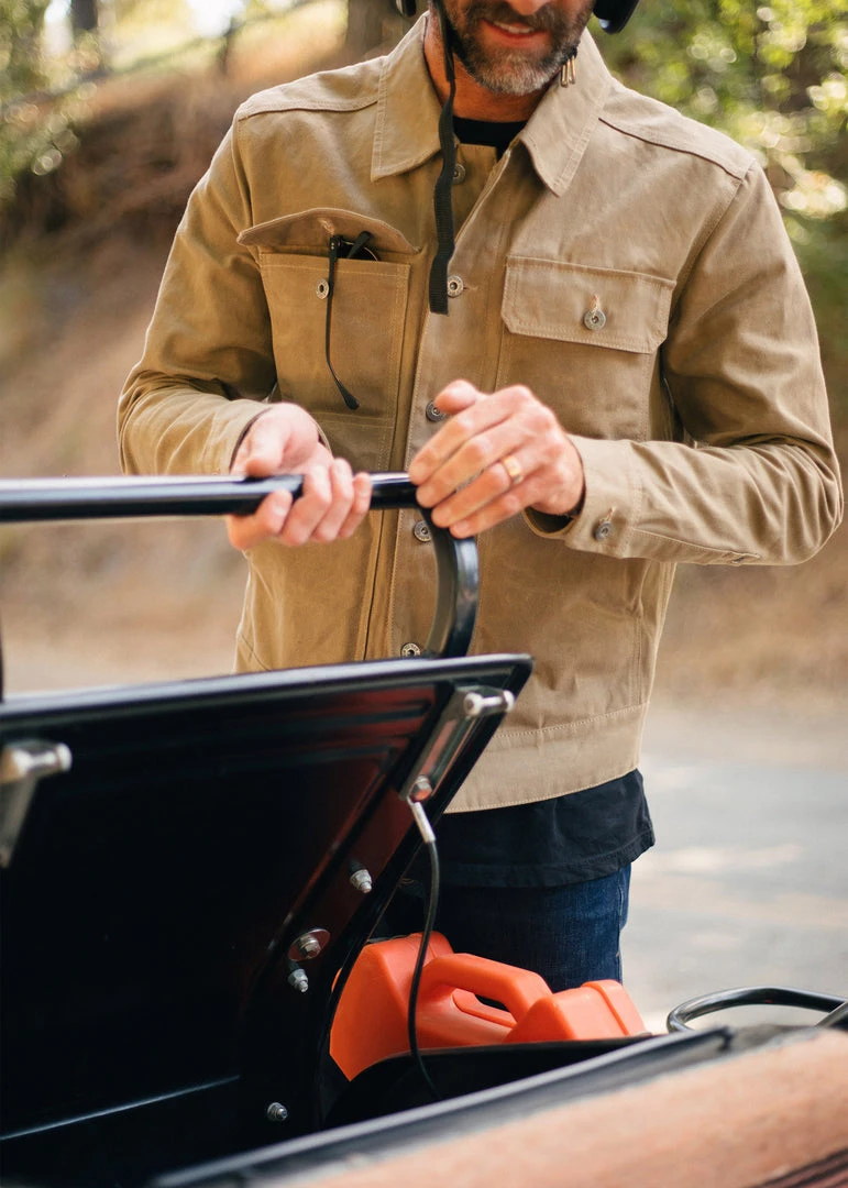 Our Iron & Resin x New Legend 4×4 Mechanic Jacket is one of our favorite pieces from this Spring ’21 collaboration. Developed from the same 14.75oz waxed cotton canvas as our Shelter Series that we launched in Fall ’20, this was one of our most loved outerwear materials this past season (and still is) and we’re really excited to use it yet again. Made 1:1 with equal parts style and function – ready to work under the hood or out on the road with a lifetime of wear.