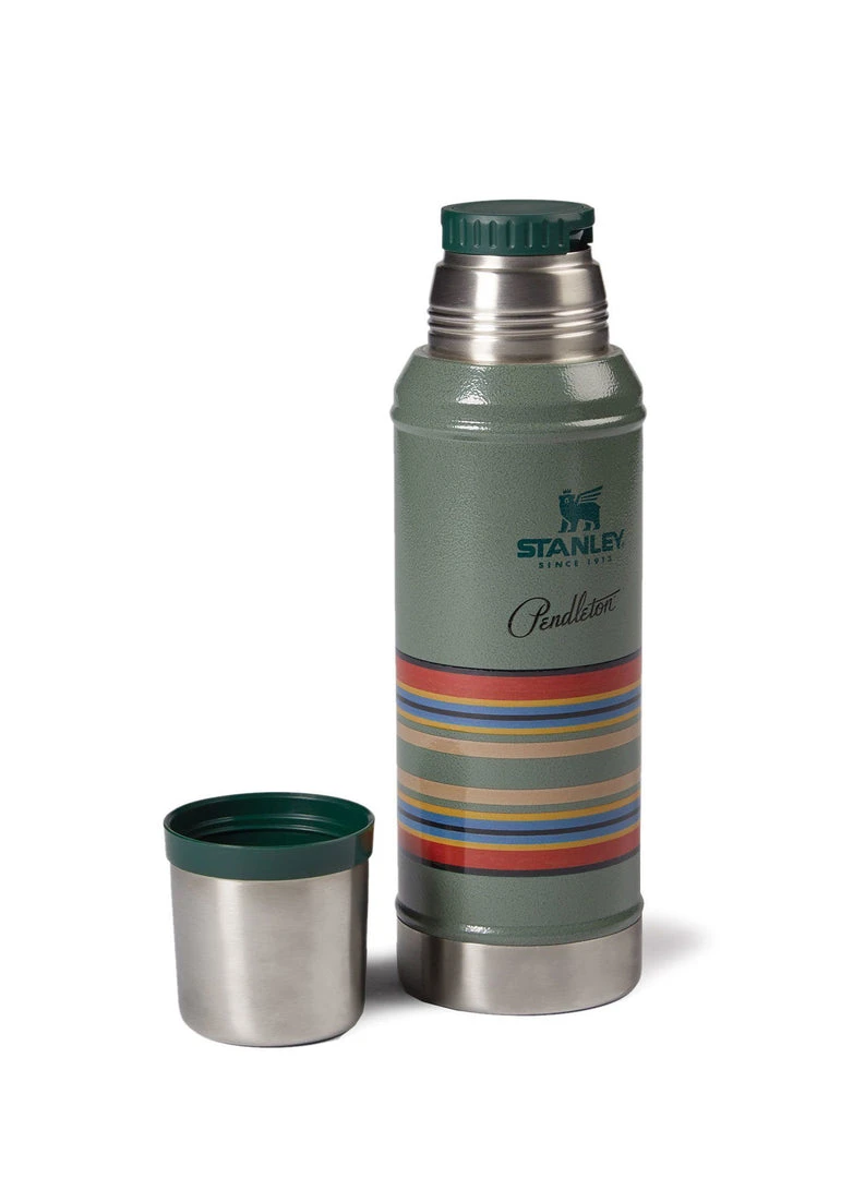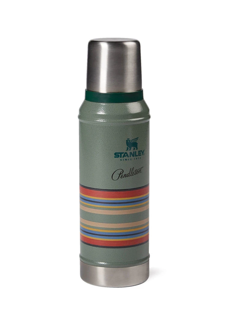 Stanley’s classic vacuum bottle adorned with stripes from Pendleton’s top selling Yakima Stripe Blanket. Built to last, this sturdy bottle has double-wall insulation to keep drinks hot or cold for hours. Screw top with an insulated cap that doubles as a handy 8-oz. cup. Wide mouth for easy filling. Stainless steel is rust-proof and BPA–free.Â