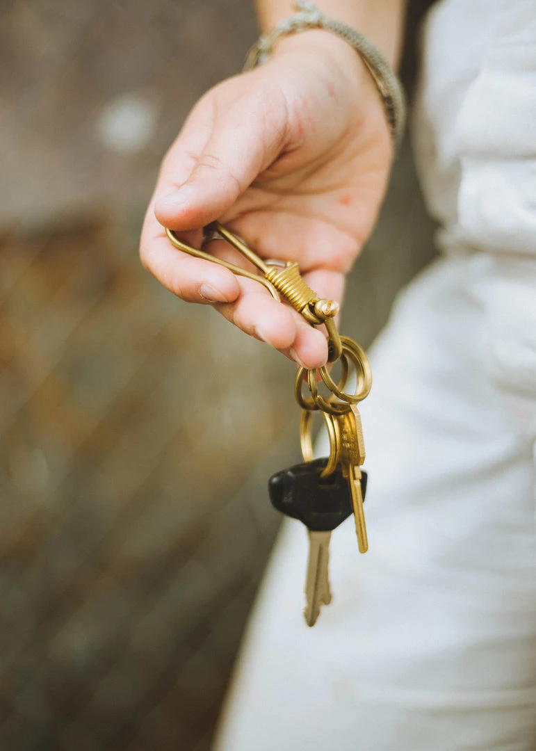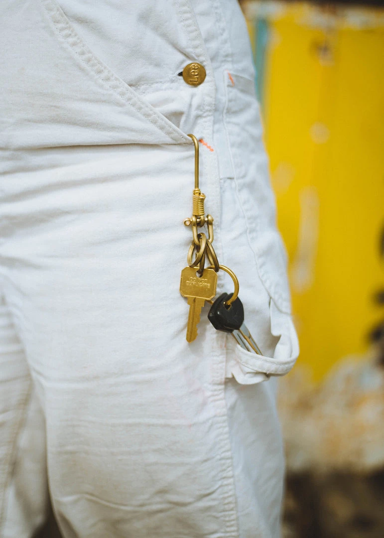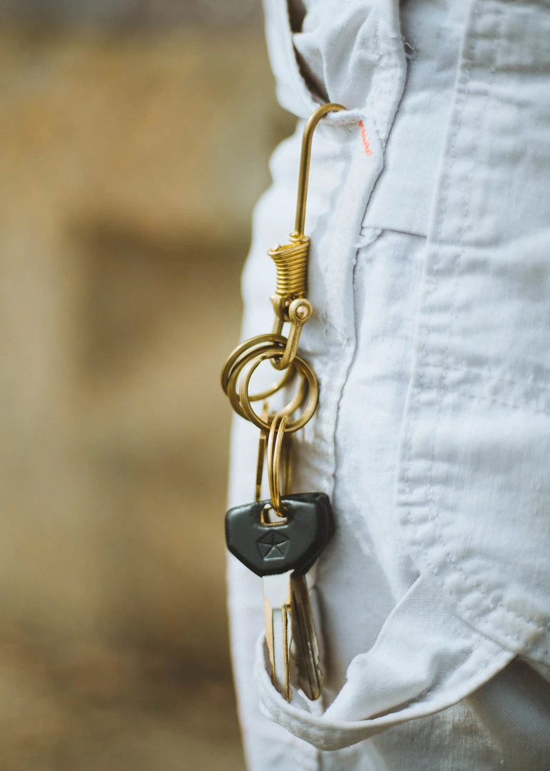 Quality brass coil fishhook key hook made in Japan by Smoky Sumi. Use it to easily attach your keys, a wallet chain or anything your heart desires.