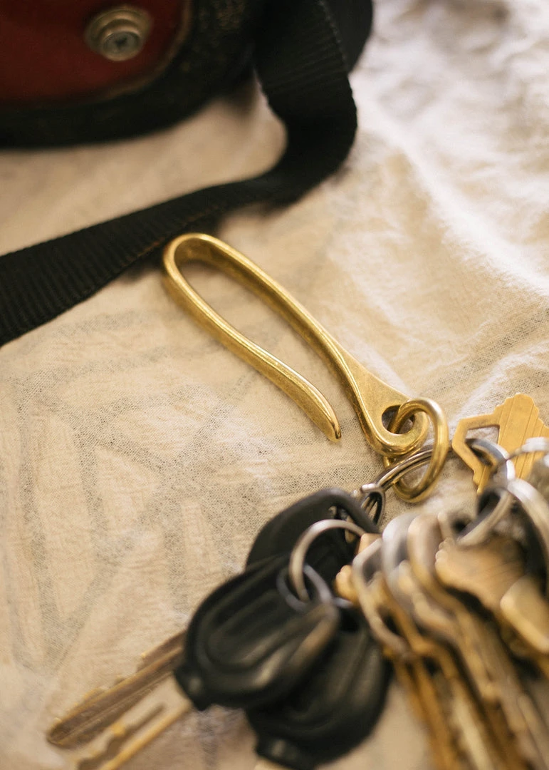Handmade by skilled craftsman Smoky Sumi of Japan, this solid brass key hook will be your missing link in holding all those keys you have shuffling around in your pocket. Easily attach a keyring to this, loop it on your belt loop, and you’re good to go.